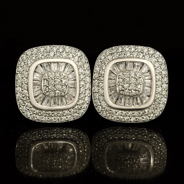 The Aurora Cushion Halo Studs are a symphony of brilliance and grace. Designed in a classic cushion silhouette, these earrings feature a radiant cluster of round and baguette-cut diamonds, encircled by shimmering halos that exude timeless luxury. Their bold yet refined presence makes them the perfect adornment for evenings of elegance and grand occasions.