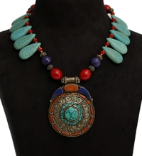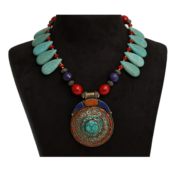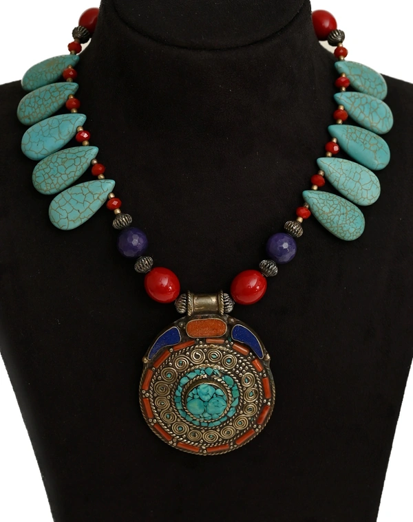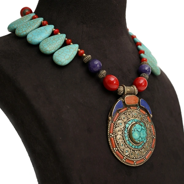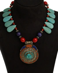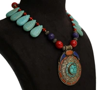Beautiful handmade Tibetan pendant set with Blue turquoise drop beads